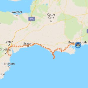 Pot sva od tam nadaljevala proti Bowleaze Cove. Na poti sva v Weymouthu na hribu videla tudi znamenito “risbo” konja na polju, za katero sem se moral ustaviti ob cesti in narediti sliko. Bowleaze Cove je majhen zaliv s čudovito plažo, ki sva si jo na hitro ogledala bolj ali manj kar s parkirišča, pozdravila sprehajalce in njihove pse, pojedla sva par piškotov in sadje, jaz pa sem tekel še v bližnjo trgovinico po magnetek za spomin. Malo predolgo sva se zadržala.
