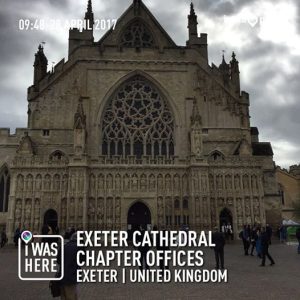 Končno sva prispela v mesto Exeter. Še dobro, da sem dobro splaniral pot in sem tudi označil, kje bova parkirala. Na žalost je bilo to parkirno mesto zasedeno, a sva našla v ulici zraven takoj parkirno mesto za najino Isignio. Parkirala sva zraven cerkvenega urada in okoli naju so hodili ljudje, urejeni, kot da gredo k maši. Hitro sva prišla do cerkve Svetega Petra v Exetru, ki je ogromna in zelo lepa katedrala. Kar sapo mi je jemalo, ko sem stopil v notranjost. Zgrajena je bila okoli leta 1400. Za ogled sva porabila več, kot sva planirala, kar je bilo 30 minut. Freske in detajli so bili preveč zanimivi, da bi šla kar mimo. Čeprav tega nisva imela splanirano, sva si vzela še 20 minut za ogled mesta. Ženo sem za teh 20 minut poslal na nakupovanje, jaz pa sem si na hitro ogledal ulice v okolici cerkve. Ob dogovorjeni uri sva se spet dobila ob cerkvi in ugotovila, zakaj so bili ljudje pred njo tako lepo oblečeni. Imeli so podelitev diplom lokalne univerze.