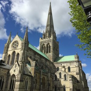 V bližini Goodwood je mesto Chichester, kamor sva se pripeljala na parkirišče v bližini katedrale Chichester Cathedral. Imela sva sprva nekaj težav, ker nisva imela drobiža za plačilo parkirnine, nato pa sva se odpravila proti cerkvi. Pot naju je vodila skozi park in v kratkih rokavih me je zeblo. Vse je sprva izgledalo tako dolgočasno, da sem samo čakal, kdaj bo žena rekla, da se vrneva do avta. Ko pa sva prispela do katedrale Chichester, naju je presenetila njena lepota in grandioznost. Kakšna cerkev! In takoj za cerkvijo se nama je odprt del mesteca, ki je namenjen le za pešče. In kako luštkano angleško mestece. Na obeh straneh male trgovinice, ki so kar vabile v svojo notranjost s prikupnimi izložbami. V središču peš cone na sredi križišča stoji Chichester Cross, ki je nadvse zanimiva struktura. Po ulicah sva nadaljevala proti avtu in seveda je moja žena morala zaviti v eno od trgovinic in si nekaj malega kupiti za spomin.