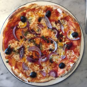 V neposredni bližini muzeja se je nahajal tudi shopping outlet Gunwharf Quays, ki je bil odprt kar do 20h. Veselje za ženo, skoraj dve uri sva imela časa. Imela sva celo dovolj časa, da sva se okrepčala v eni od tamkajšnjih restavracij, odločila sva se za pico v Pizza Express. Povprečna pica, umazan lokal (miza zraven naju je bila polna umazane posode, ostanki hrane po tleh, natakarji pa so se mirno sprehajali mimo), počasna postrežba, angleške cene. Z eno besedo, bolje bi jo verjetno odnesla v sosednjem lokalu s hamburgerji in hitro prehrano.