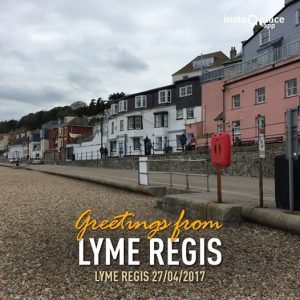 Za zaključek dneva sem izbral, da greva do obmorskega mesteca Lyme Regis. Zakaj sem izbral to mestece, še sam točno ne vem. Verjetno zato, ker je bilo na poti proti mestu, kjer sva imela rezervirano prenočišče. Imela sva srečo s parkiranjem avtomobila, saj je z malega parkirišča ob obali ravno odpeljal en avto. Odpravila sva se po hribu navzgor po ulici. Moji ženi so zapirali trgovine tik pred nosom, saj je bila ura že pol štirih. Pa ravno, ko si je ogledala izložbo trgovine in je hotela vstopiti v trgovino, so zaklenili vrata. Smola. Na srečo sva vseeno našla nekaj trgovinic, ki so bile odprte do petih, in lahko sva si kupila magnetek za spomin, pomorske zastavice, ki sva jih kasneje doma obesila na vikendu na morju, in še kakšno malenkost. Na ženino srečo je bila trgovina lokalne verige z mornarsko modo Fatface še odprta, tako da sva uspešno umirila tudi tovrstne potrebe. Kasneje sva ugotovila, da je to mesto (in okolica) zelo znano po starodavnih fosilih in da so njihova najdišča v neposredni bližini mesta ter da ti fosili segajo vse do dobe, ko so živeli dinozavri (cela obala se imenuje jurska obala, Jurassic Coast). Zato se je tudi mesto pripravljalo na sejem fosilov, ki je bil planiran za vikend. Ko se je vse ostalo na ulici počasi pozaprlo, sva našla pub, ki je še bil odprt, kjer sva si privoščila zasluženo pivo. Tipičen angleški pub, s pogledom na morje. A hrane nisva mogla takoj naročiti, saj je kuhar prišel šele po šesti uri. Naročila sva si eno porcijo rakcev in si jo delila. Nisva se hotela preveč najesti, saj sva si rekla, da bova nekaj pojedla še zvečer v kraju, kjer imava hotel.
