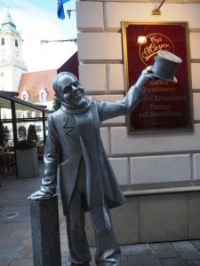 Seveda ob obisku Bratislave ni moč spregledati kipov, ki so značilnost starega mestnega jedra: Čumil “The Peeper”, lepi Naci (Schöne Náci), Napoleon’s Army Soldier Statue, Fountain of St. George and the Dragon. Prav tu boste lahko našli veliko lokalov s hrano in spominki. Moj nasvet je, da se tem lokalom, čeprav so še tako vabljivi, izognete, saj so cene v njih precej zasoljene, nedaleč stran pa je ponudba ravno tako pestra in po sprejemljivih cenah.