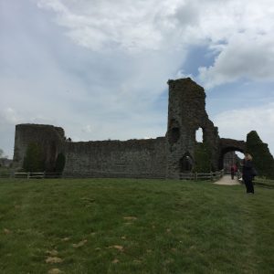 Le 15 minut vožnje z avtom kasneje sva že bila pri Pevensey Castle. Ko sva vstopila na posest tega gradu, je vse skupaj izgledalo zelo zapuščeno. No, ne zapuščeno, ampak prazno, razen naju dveh sta bila na tem posestvu le še dva sprehajalca psov in to je bilo to. Ker je bilo tako vse mirno, sva sprva menila, da so ruševine gradu, ki ga iščeva, verjetno mogočnejše in malo naprej, tako da sva prehodila celo posest, dokler nisva ugotovila, da sva vendarle že šla mimo gradu, zato sva se vrnila proti njemu. Lahko rečem, da sva bila skoraj edina v tem gradu. No, kar je ostalo od njega, saj je večinoma ostalo le obzidje in en stolp, v katerem je razstava o gradu. Je pa na tleh še vedno vidno, kje je stala cerkvica in kje je bil vodnjak. Ob vhodu so naju tudi opozorili, da so nekateri kletni prostori pod vodo, zato naj ne hodiva tja. Presenetila me je to, da je bilo po opisu to trgovska postaja in da je v bližini morje. Morje? Jaz ga nisem nikjer videl. Šele, ko sva se odpeljala stran od gradu, sem v daljavi zagledal morje.